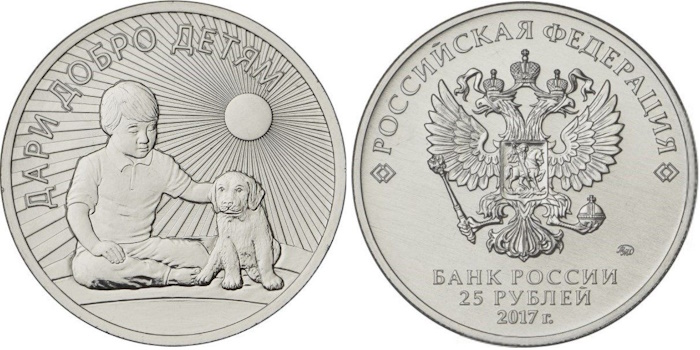 Серия монет, посвященных поддержке благотворительных проектов и помощи нуждающимся детям, стала важной частью культурного наследия России. Монета 25 рублей 2017 «Дари добро детям» в красивом буклете была выпущена Банком России в рамках программы поддержки благотворительности и детского творчества. На оборотной стороне изображен ребенок, сидящий рядом с щенком, символизируя дружбу и взаимопомощь. Эта монета направлена на привлечение внимания общественности к проблемам детей и поддержку детских инициатив.